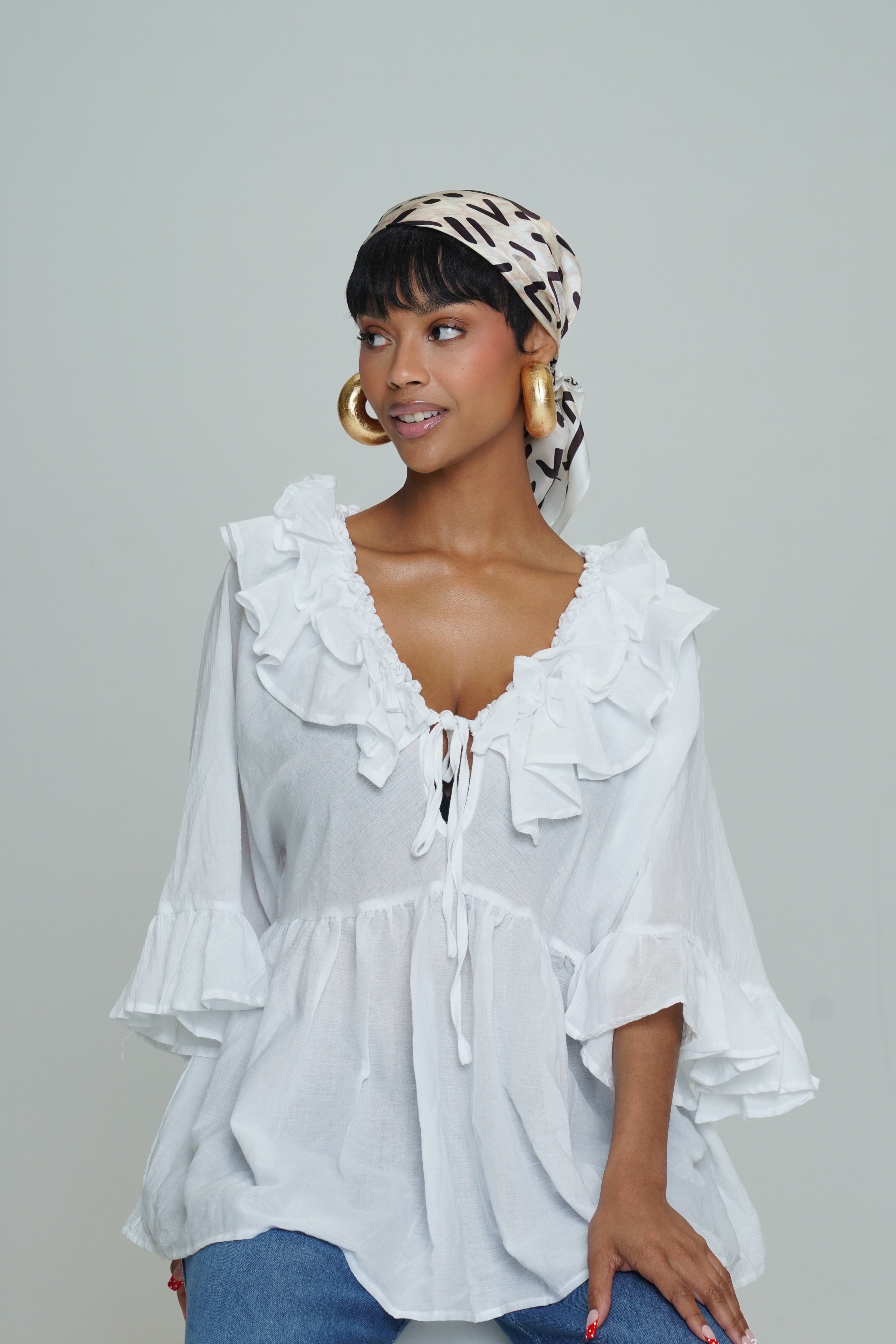 LUNA LINEN WHITE FLOOLY TOP