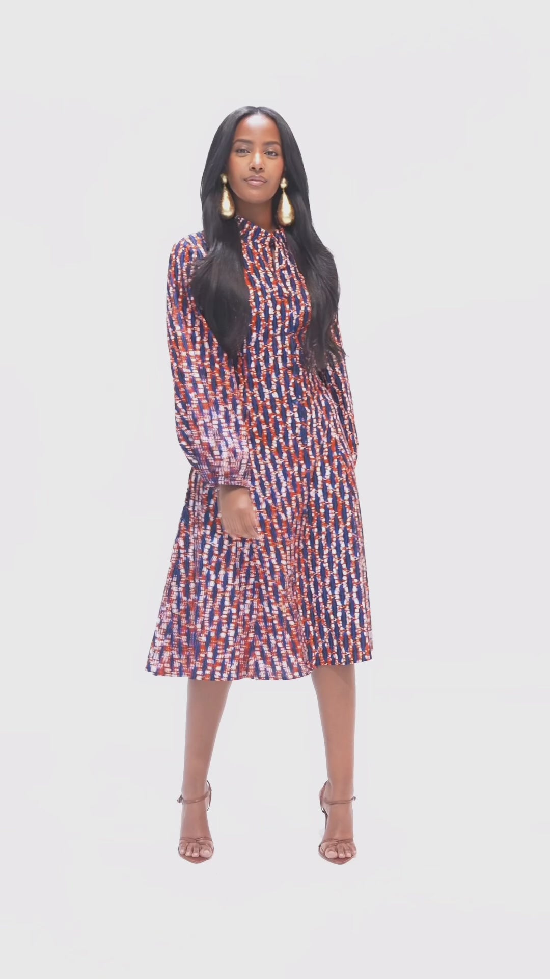 Une robe midi élégante et intemporelle, pensée pour flatter toutes les silhouettes. Elle présente des boutons recouverts à l’avant, réalisés dans le même tissu pour une finition harmonieuse et raffinée. Ses liens ajustables au dos permettent de cintrer la taille selon vos envies. Avec ses manches longues volumineuses et sa coupe midi évasée, cette pièce apporte une allure chic en toute simplicité.