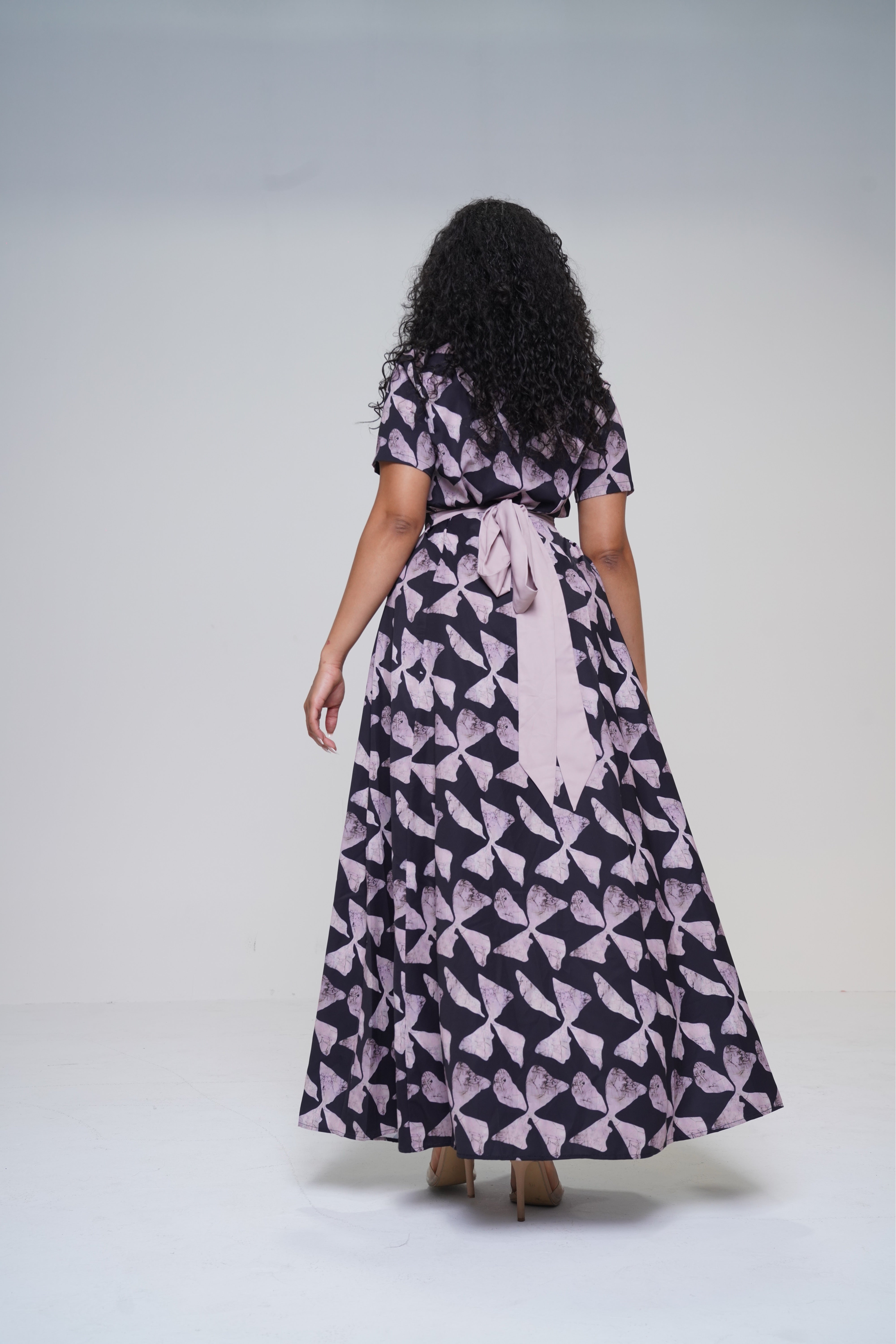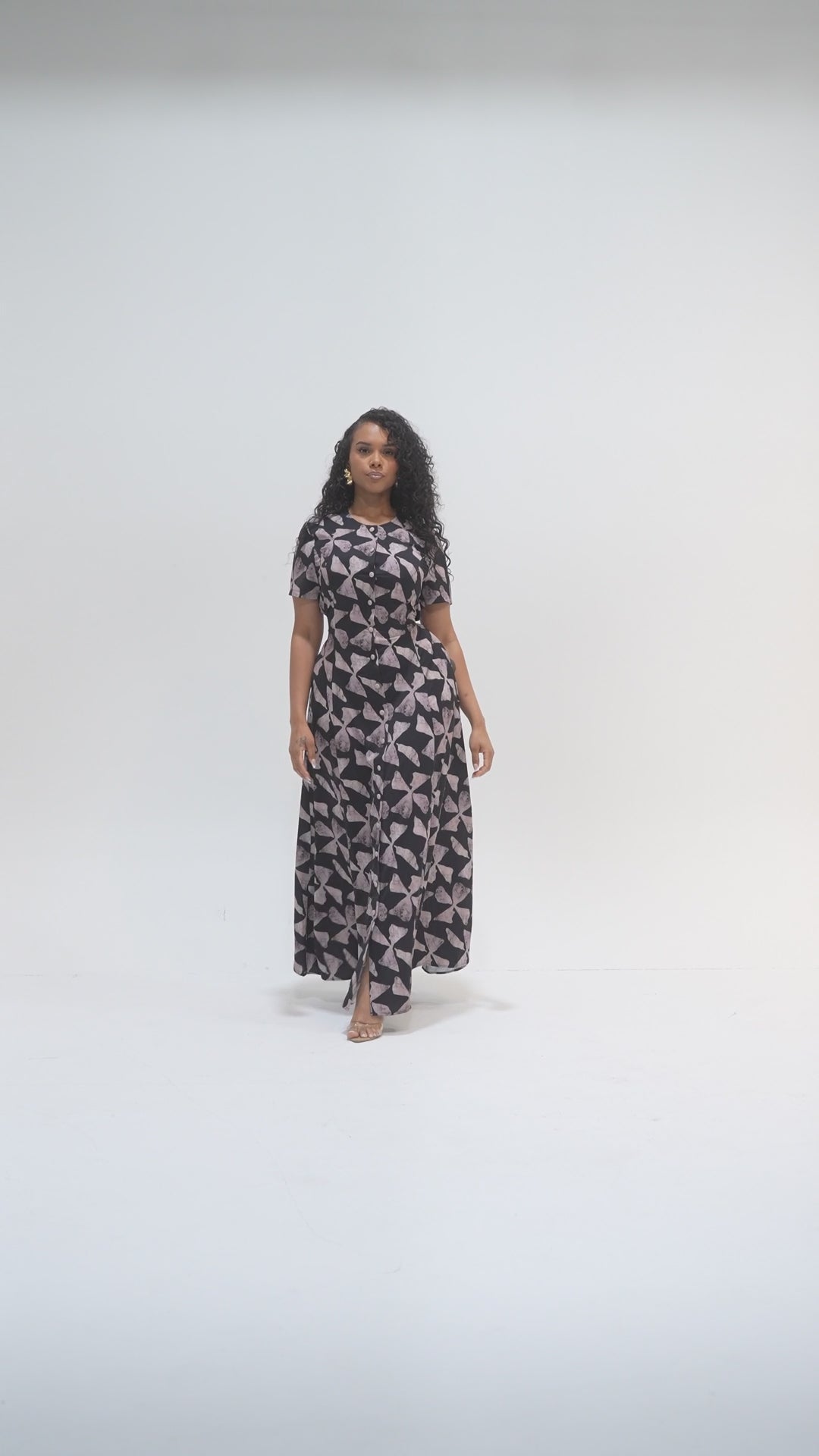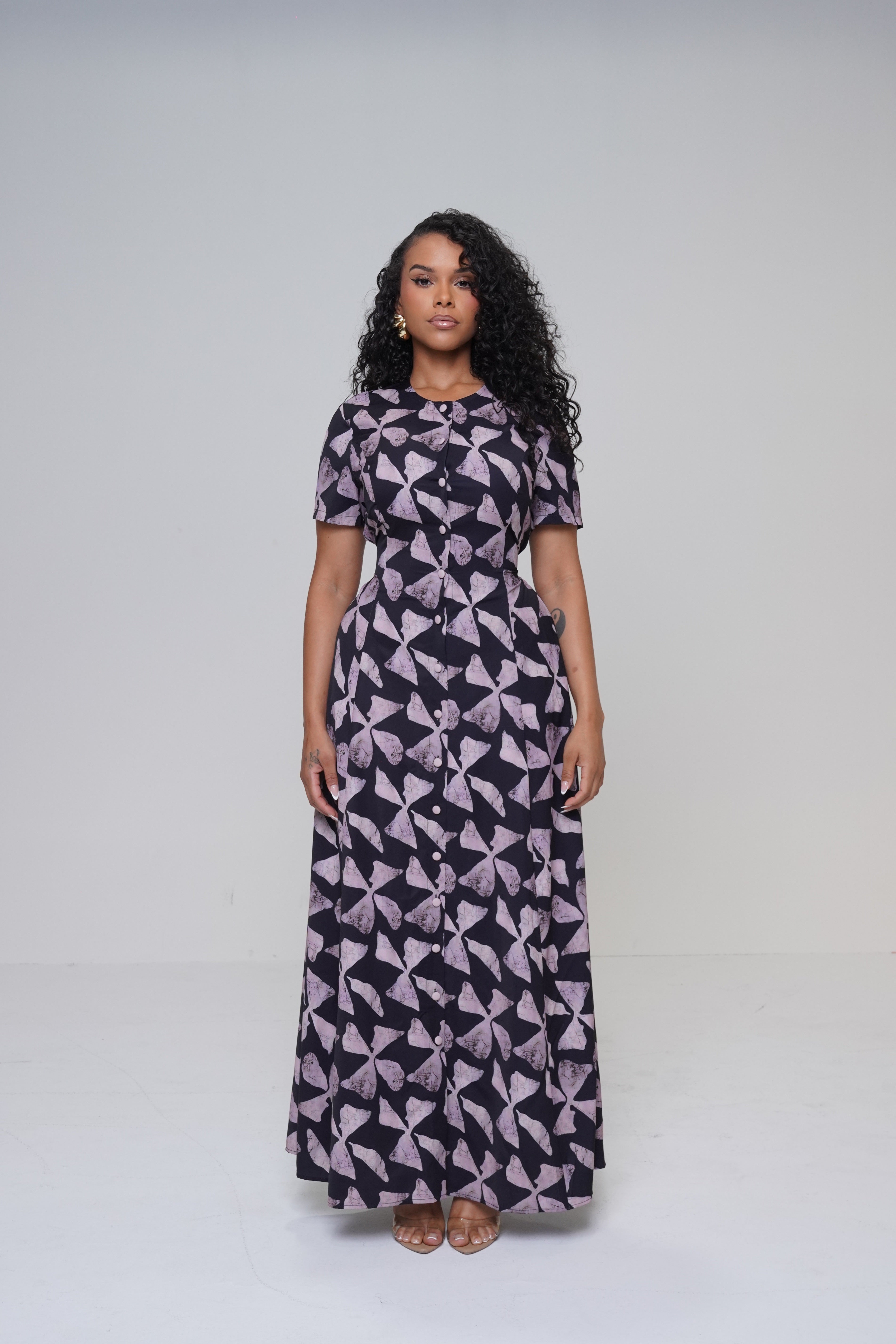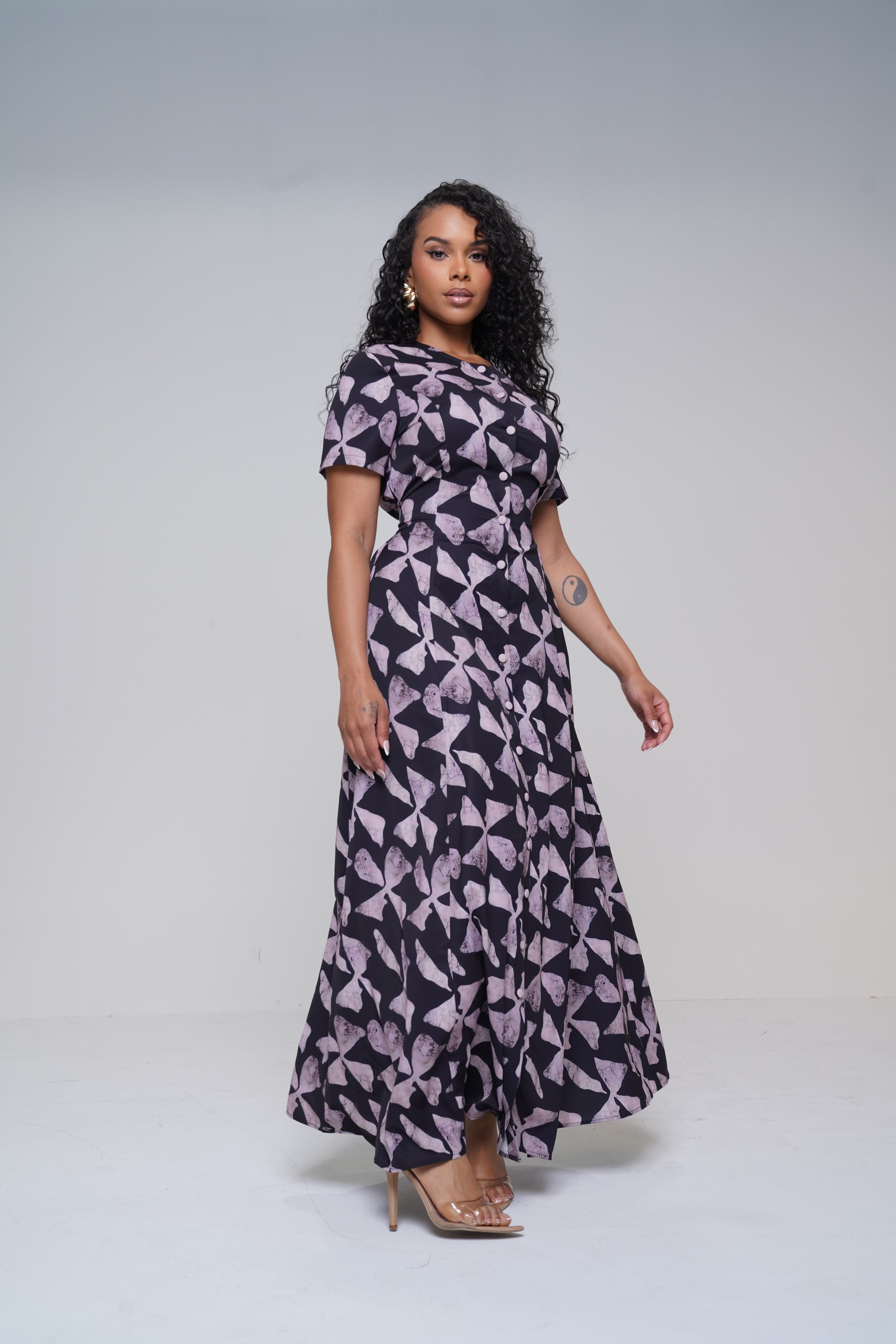 Bold, effortless, and deeply rooted in African elegance — the Nya dress is crafted in a rich mudcloth-inspired print with modern tailoring. This full-length shirt dress features a button-down front, short sleeves, and a flattering silhouette enhanced by a waist tie in contrasting brown. Side pockets add comfort and convenience.